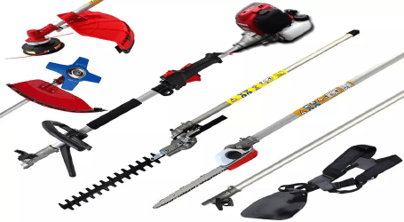 ASPERO® 4-in-1 brushcutter is a multi-purpose machine powered by a 2 stroke single cylinder air cooled gasoline engine with a 1.2 litres fuel tank, engine displacement of 51.7cc and a power of 1.8kw (2.4Hp) with an electronic recoil start engine. It comes eqipped with the following cutting accessory - Metal blade, Nylon cutter, Hedge Trimmer Accessory & Chainsaw Accessory.